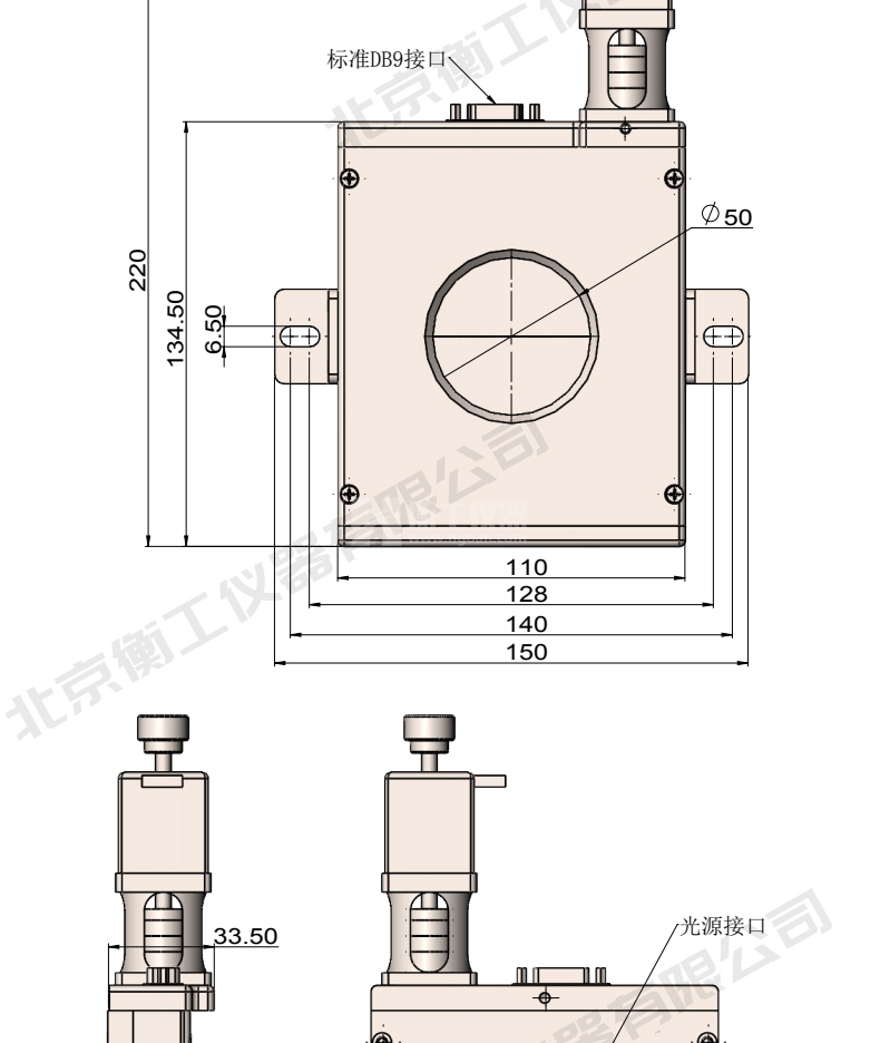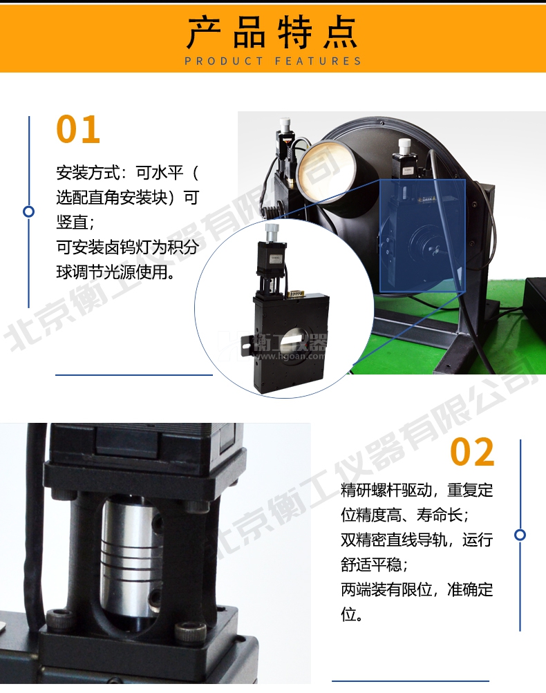 ● 可安裝鹵鎢燈為積分球調(diào)節(jié)光源使用。