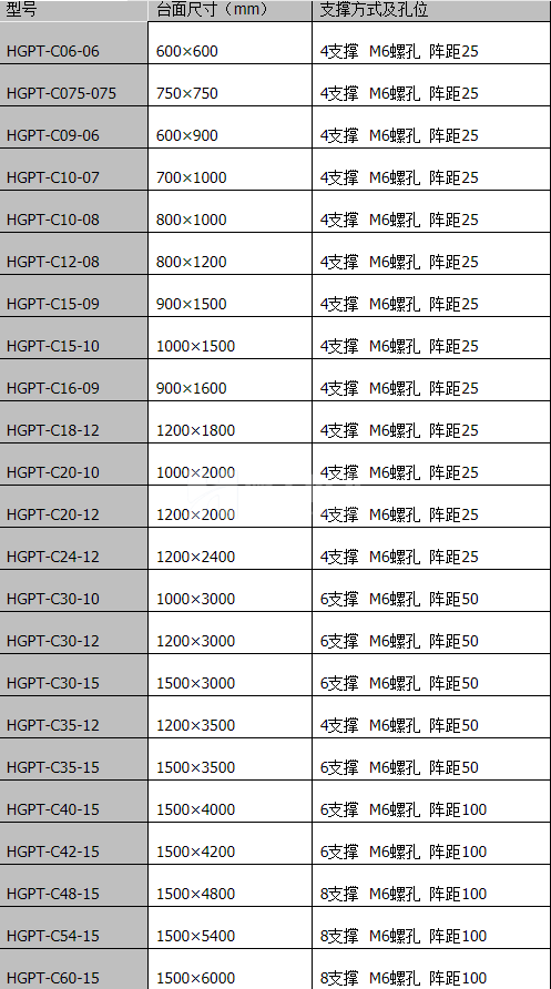 衡工隔振平臺(tái)選型參數(shù)表