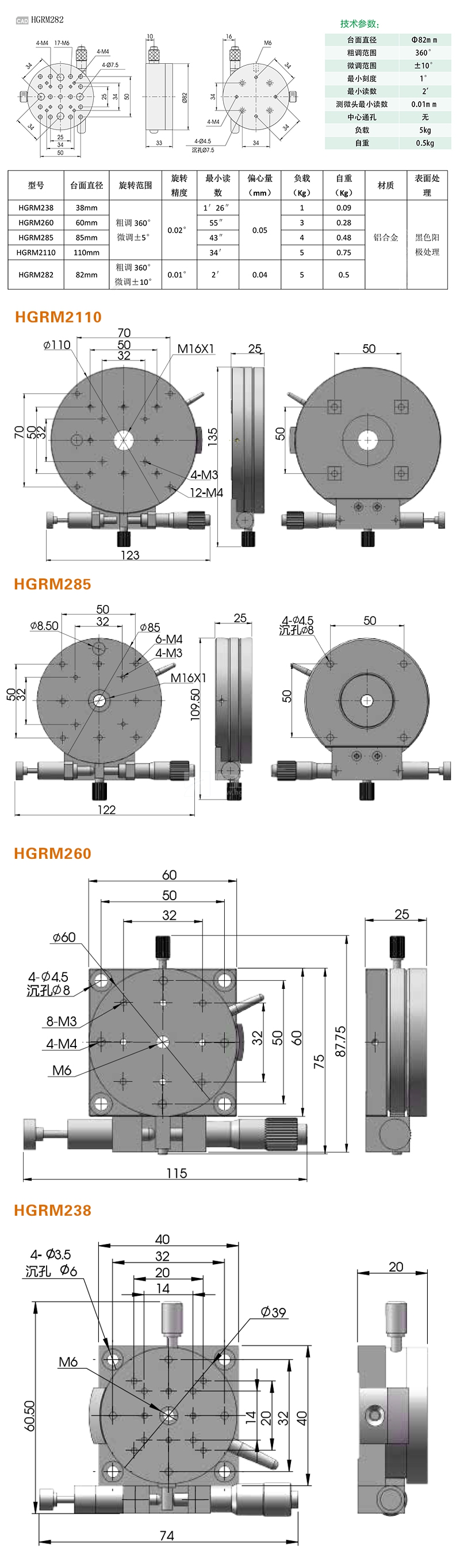 HGRA145 HGC301光學微型精密電動手動旋轉臺多維組合升降蝸輪電控位移角度滑臺