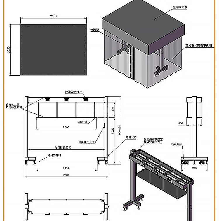光學(xué)平臺(tái)儀器架可移動(dòng)器材兩層放置設(shè)備遮光罩研究室隔振工作臺(tái)架