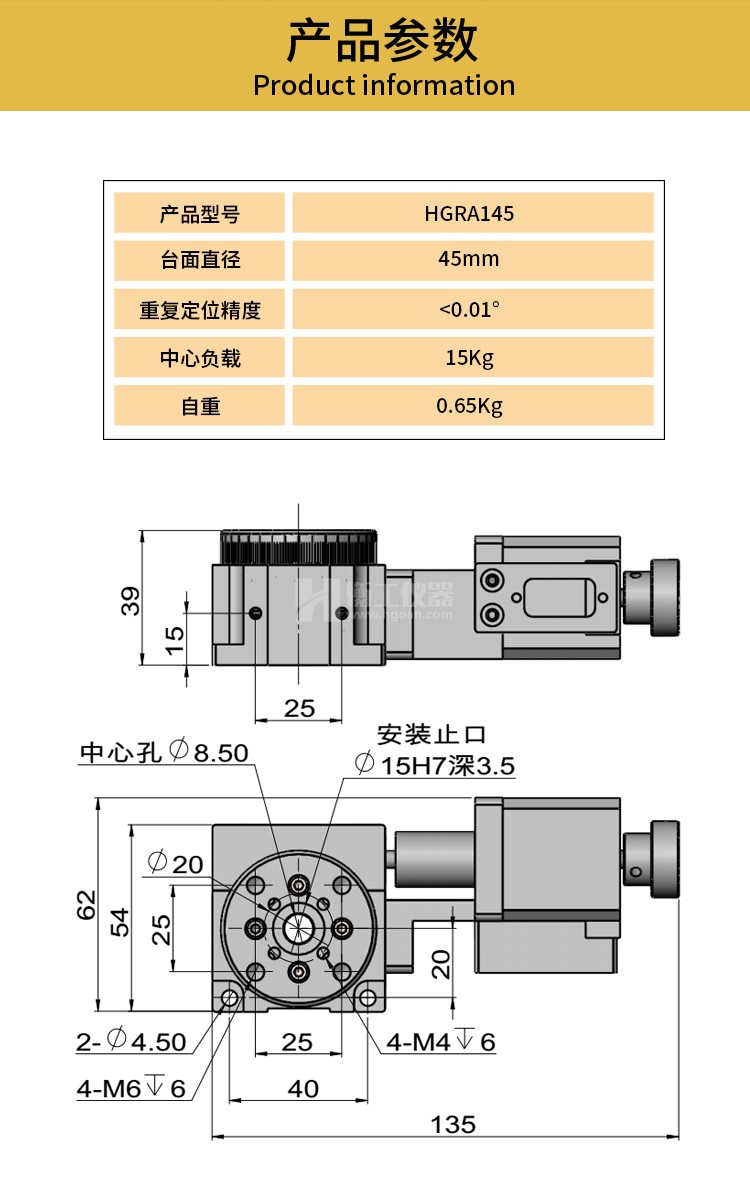 HGRA145 HGC301光學(xué)微型精密電動手動旋轉(zhuǎn)臺多維組合升降蝸輪電控位移角度滑臺